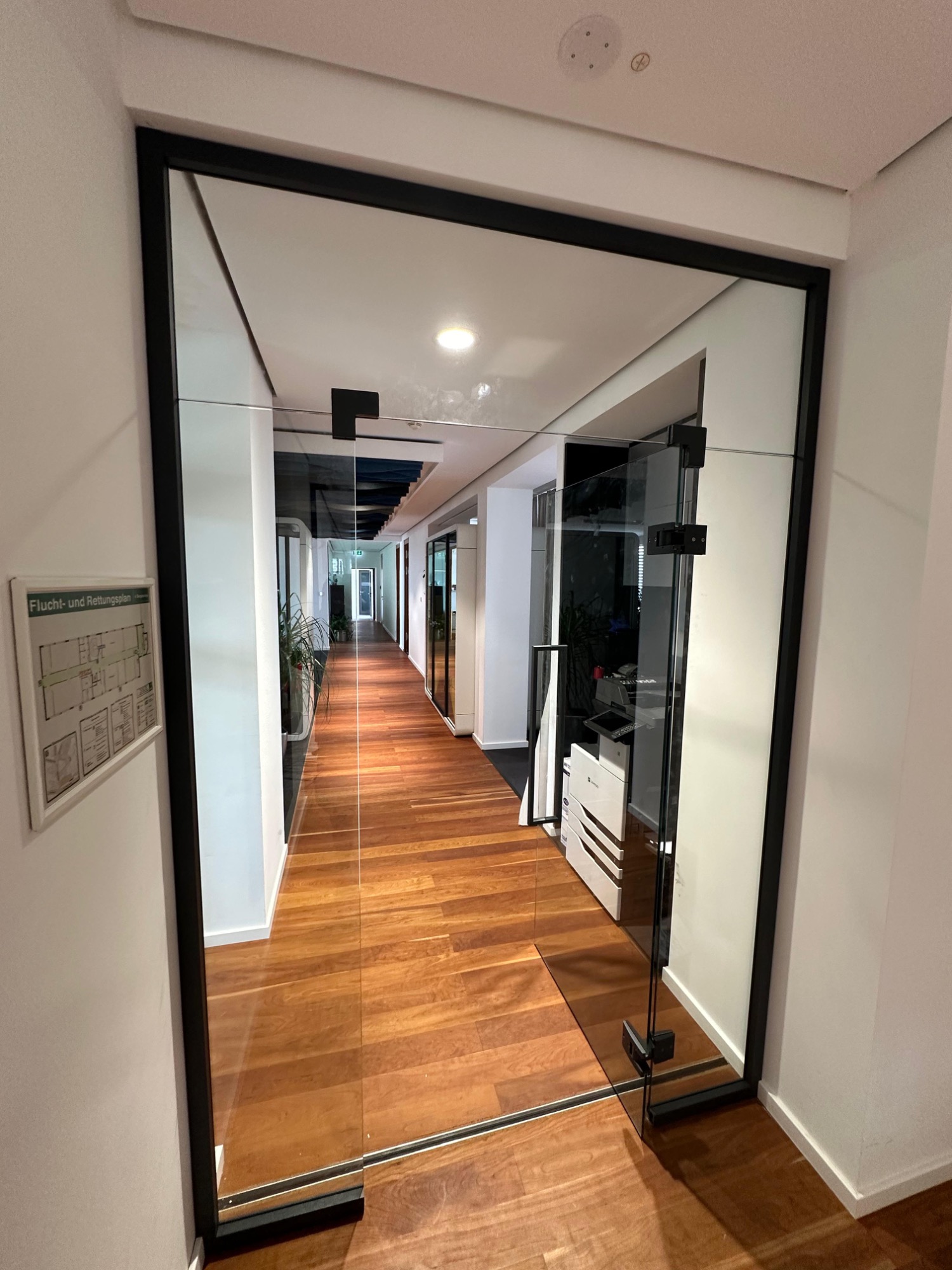 Glastrennwände schaffen Privatsphäre ohne Licht zu verlieren. Ideal für Büros, Praxen, Besprechungsräume oder Zuhause. Optional mit Akustikglas, Milchglas oder Folien für Sichtschutz.